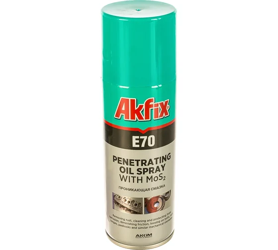 Смазка проникающая Akfix E70 200мл содержит в своем составе сульфат молибдена. Этот компонент увеличивает качество работы подвижных деталей и существенно снижает трение. Регулярное применение укрепляет поверхностный слой металла и продлевает срок службы механизмов.