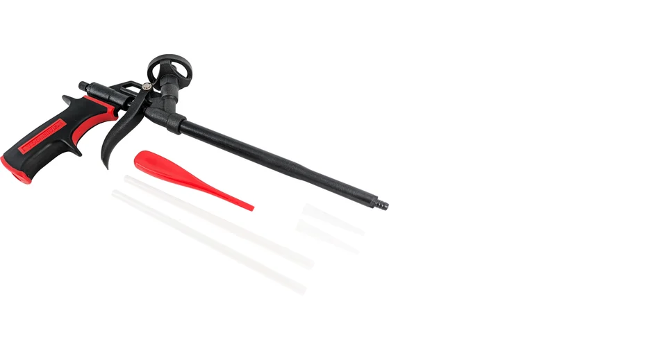 - Применяется для нанесения монтажной пены на различные поверхности (заполнение пустот при монтаже окон, дверей и других элементов строительных конструкций).