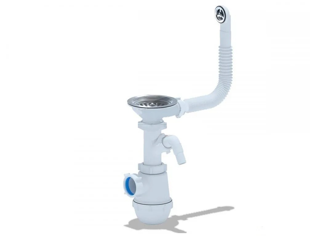 Сифон для мойки АНИ ПЛАСТ Грот A1042SP 3 1/2"x40 мм с гибким переливом, с отводом для стиральной машины