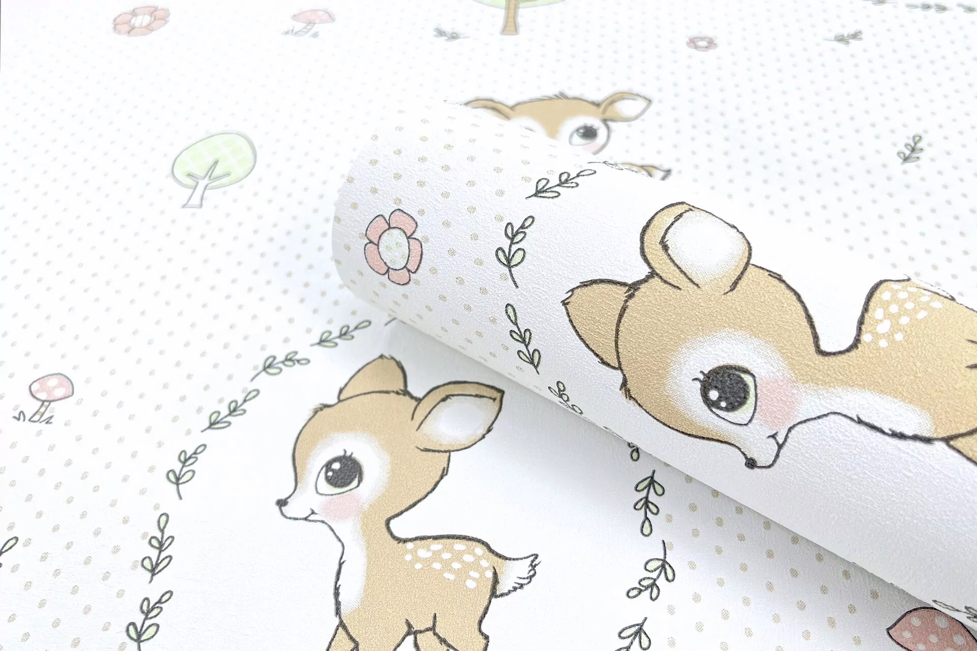 Обои бренда Erismann It's My ROOM 60668-02 флизелиновые 1,06х10м, фон бежевый, рисунок-оленята и растительный орнамент