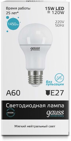 Лампа Gauss LED Elementary A60 15W E27 4100K