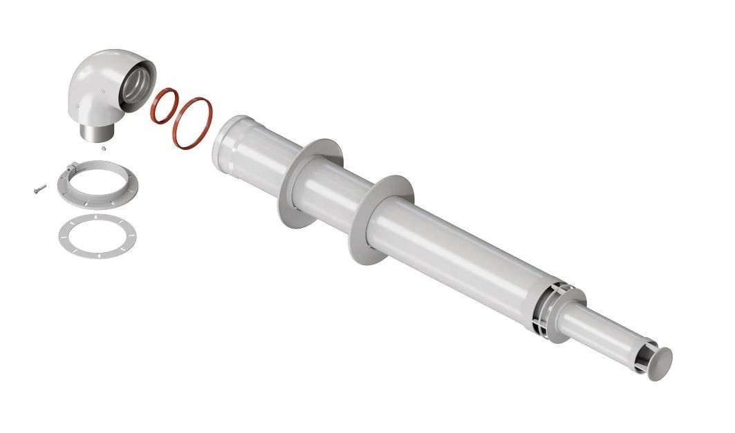 Комплект коаксиального дымохода Federica Bugatti К60/100 длиной 750 мм. с антиобледенителем  подходит для газовых котлов таких брендов, как Bugatti, Navien, Wolf, Bosch, Proterm, Buderus.