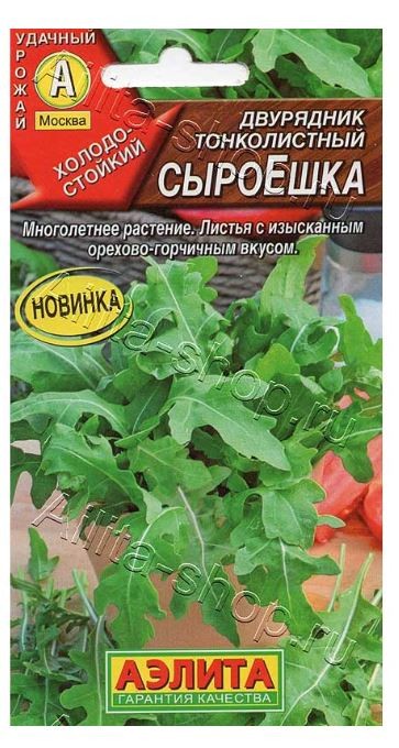Популярное многолетнее овощное растение, которое выращивается не только на приусадебном участке, но и на подоконнике. Нежную и ароматную зелень можно срывать через 20-25 дней после всходов. Розетка листьев полураскидистая, высотой 15-20 см. Листья с изысканным орехово-горчичным вкусом, благодаря своему аромату они добавляют особую нотку свежести и пикантности любому блюду. Сорт используется для приготовления разнообразных свежих салатов, украшения бутербродов и в качестве гарнира к рыбе и мясу.