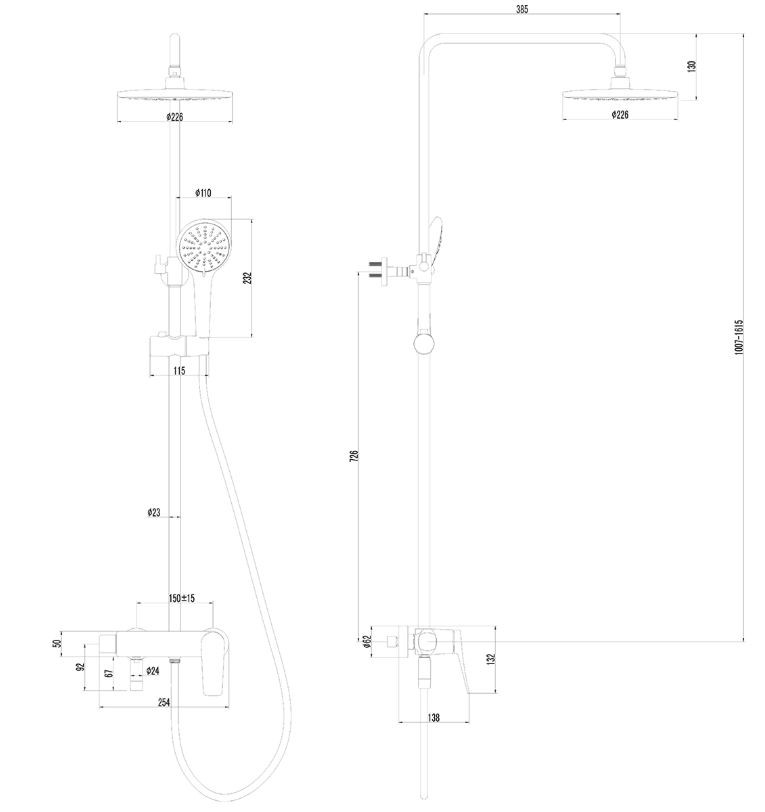 - Верхняя поворотная душевая лейка «Тропический дождь» 226 мм