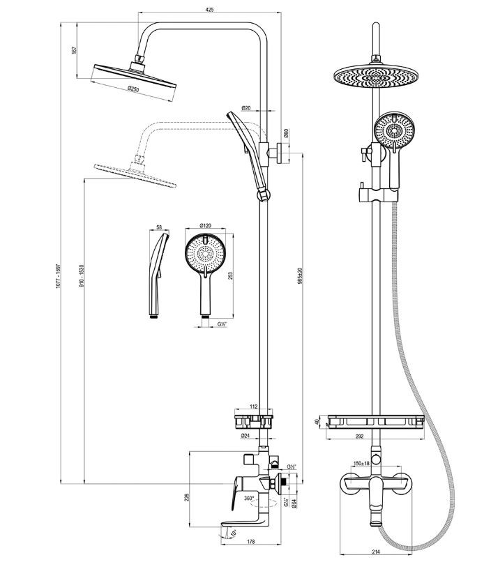 - Регулируемое по высоте крепление для лейки