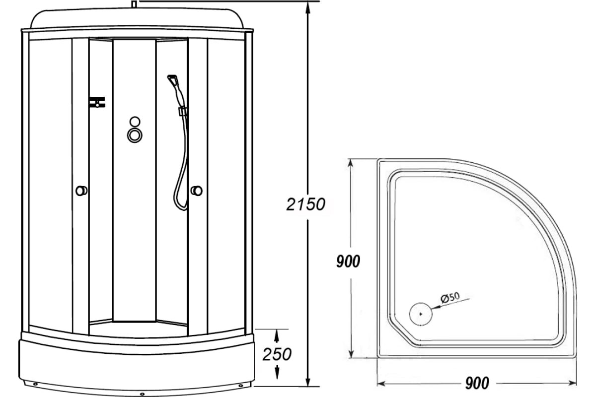 Кабина душевая CS-6690-25FW 90x90x215 СП узор стекло 4мм хром 00078800