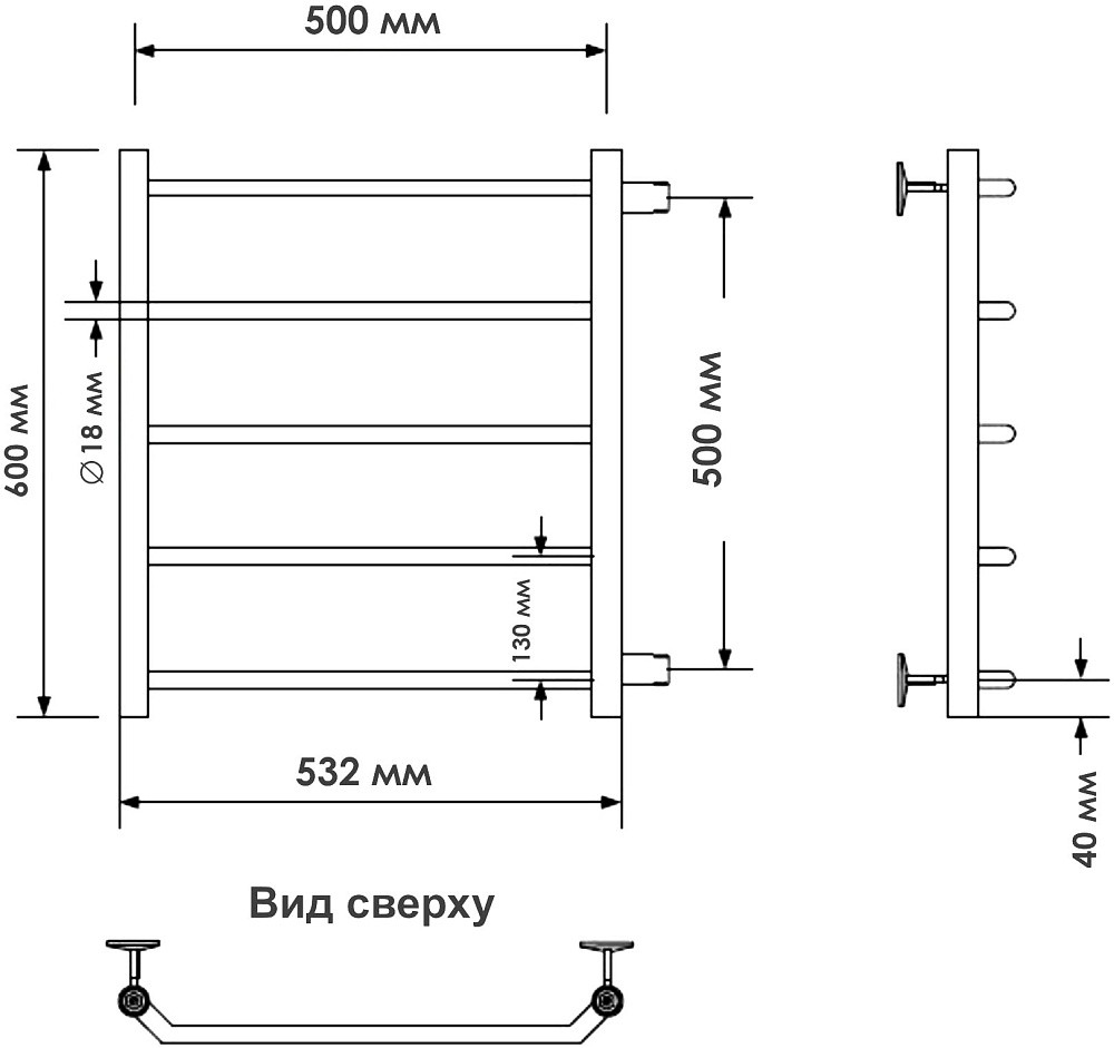 Полотенцесушитель INDIGO Roof 60x50, межосевое 50, боковое подключение, полированный