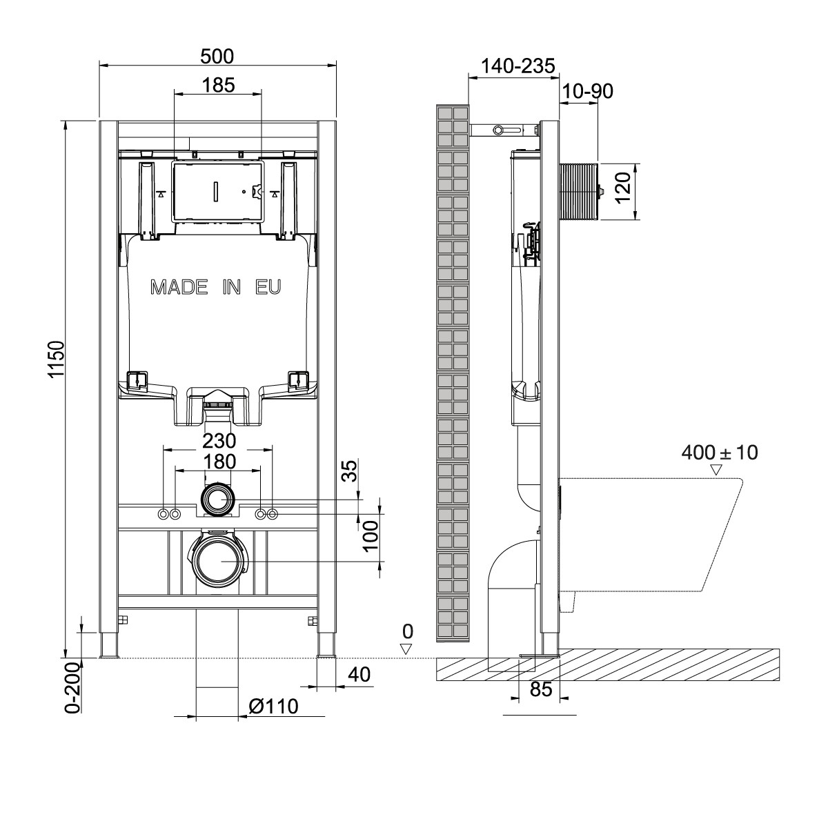 Система инсталляции LEMARK PENEDA: Прочная стальная рама, обеспечивающая надежную поддержку унитаза.