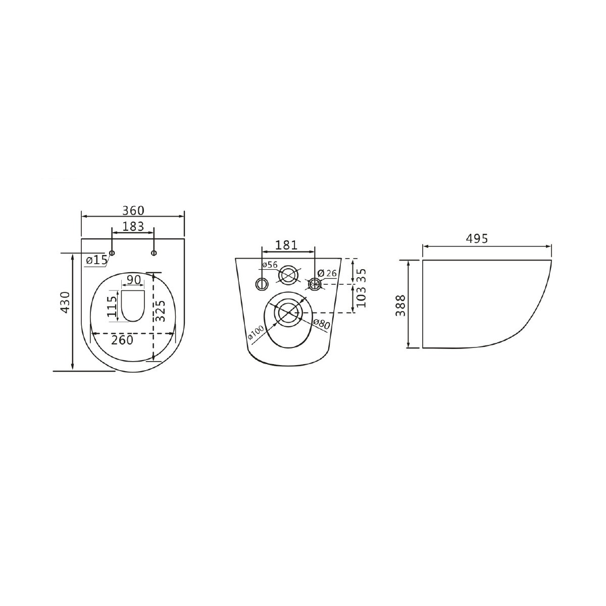 Подвесной унитаз GLAZER 100802428: Белоснежный, безободковый унитаз подвесного типа для лёгкой уборки и современного внешнего вида.