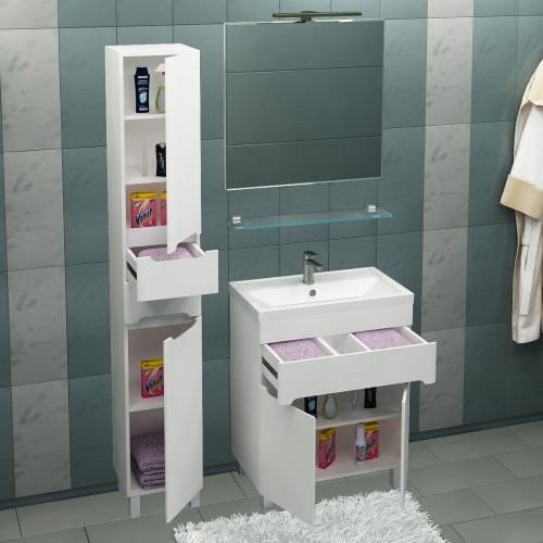 Коллекция "Корро" - это привлекательный дизайн и функциональность. Геометрия фасадов позволяет не использовать традиционные ручки. Напольный вариант установки. Две распашные двери открывают доступ к месту хранения ванных принадлежностей. Для удобства пространство поделено горизонтальной полкой. Под раковиной располагается выдвижной ящик по всей ширине тумбы. Для удобства монтажа и обслуживания сантехнической арматуры в ящике предусмотрена ниша. Раковина керамическая, прямоугольной формы.