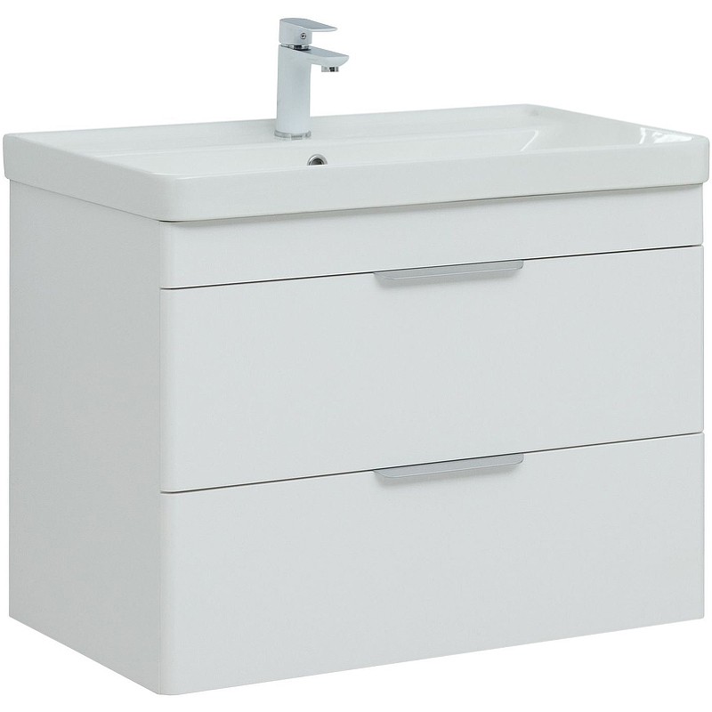 Тумба Ирис new 80 подвесная,  2 ящика, белый глянец